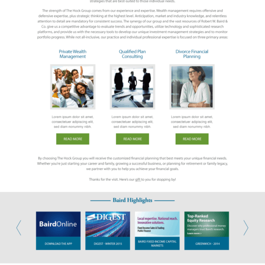 My role on this project was managing and directing, but quickly turned into more of a hands on role because we had to juggle some projects around due to a low amount of resources. I was tasked with doing the visual design after being supplied with the approved wireframes. The wireframes were created by one of my team members, then I was tasked to create the visual design and and code the approved designs into Emerald Connect’s proprietary content management system.