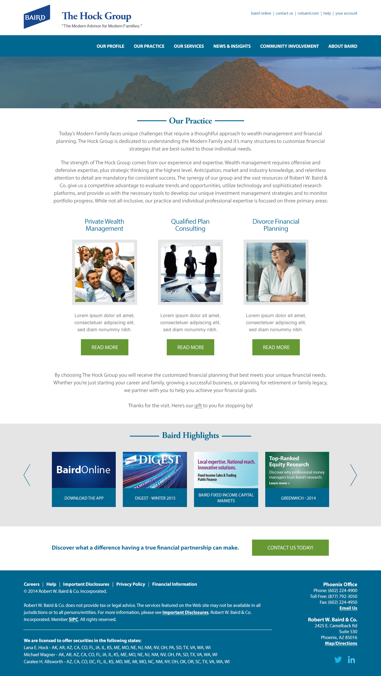 My role on this project was managing and directing, but quickly turned into more of a hands on role because we had to juggle some projects around due to a low amount of resources. I was tasked with doing the visual design after being supplied with the approved wireframes. The wireframes were created by one of my team members, then I was tasked to create the visual design and and code the approved designs into Emerald Connect’s proprietary content management system.